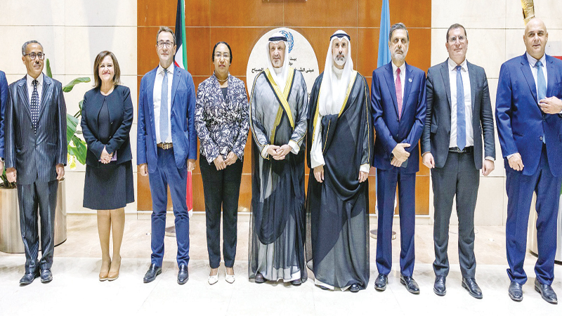 وزير الخارجية الشيخ سالم العبدالله والشيخ جراح الجابر مع مسؤولي بعثة الأمم المتحدة لدى البلاد