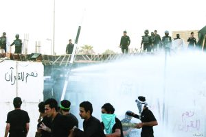 محتجون عراقيون غاضبون يضرمون النيران في السفارة السويدية في بغداد احتجاجا على تكرار سماح الحكومة السويدية بحرق القرآن الكريم والإساءة للمقدسات الإسلامية وحرق العلم العراقي (وكالات)